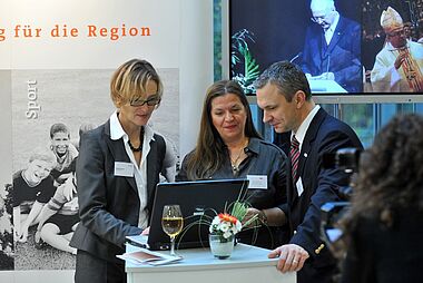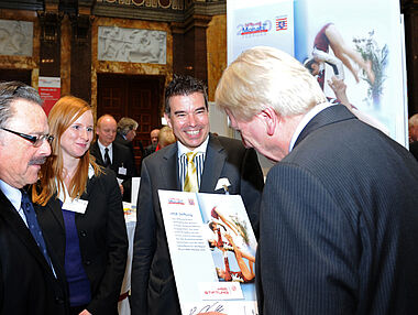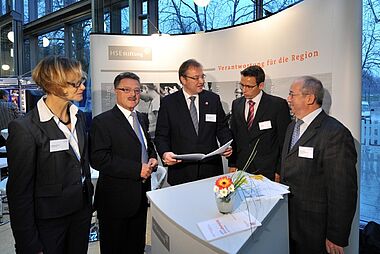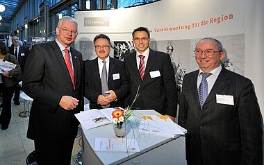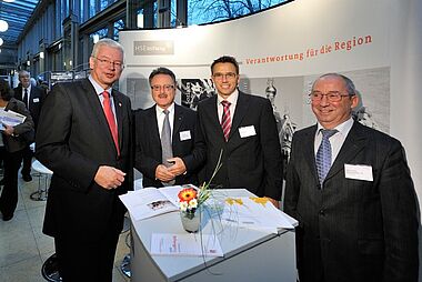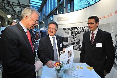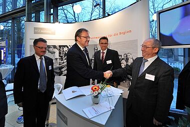 Die Plattform des Stiftungstags konnten Professor Horst H. Blechschmidt (Vorstandsvorsitzender HSE Stiftung), René Sturm (Geschäftsführer HSE Stiftung), Peter Christ (Bgm a. D., Vorstandsmitglied HSE Stiftung) und Christa Daum (Mitarbeiterin HSE Stiftung) zu interessanten Gesprächen nutzen. Beim Rundgang durch das Stiftungsforum hat neben dem Hessischen Ministerpräsident Roland Koch auch der Darmstädter Regierungspräsident Johannes Baron die Gelegenheit zu einem Gespräch mit den Vertretern der HSE Stiftung genutzt.
